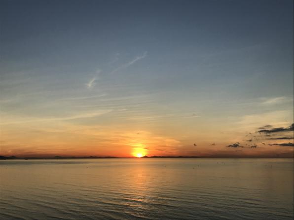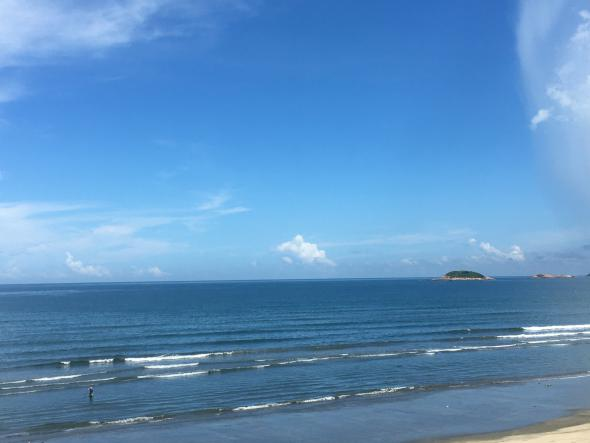 腳觸沙石,面迎海風(fēng),細(xì)嗅海風(fēng)中咸咸的獨特風(fēng)味。當(dāng)心儀已久的大海展現(xiàn)在眼前,我豁然開朗,乘車的疲勞便隨著咸澀的海風(fēng)一掃而光,頓覺神清氣爽。