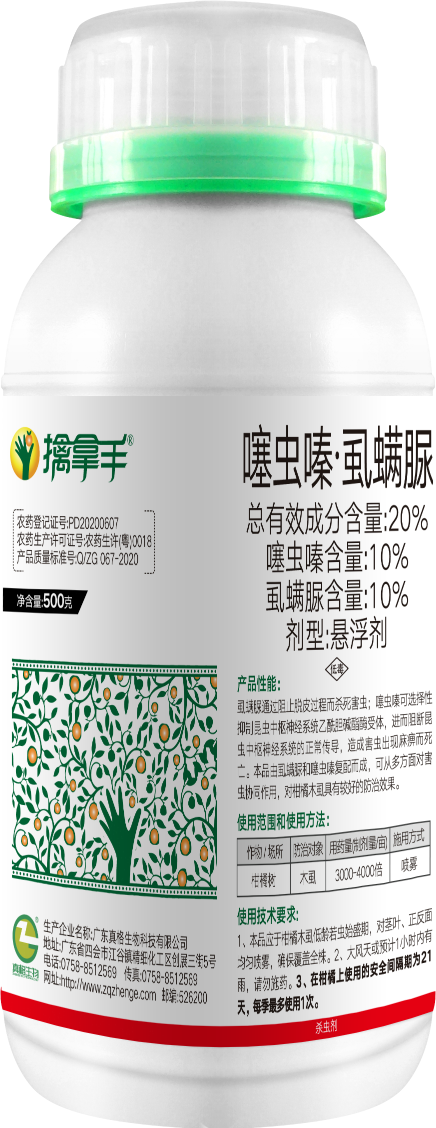 廣東真格通過大量的室內(nèi)及室外藥效試驗(yàn),篩選出針對各種柑橘病蟲害的最佳化合物配方,達(dá)到一藥多治多種病蟲害策略。產(chǎn)品擒拿手(20%虱螨脲噻蟲嗪懸浮劑),就是典型,通過虱螨脲與噻蟲嗪復(fù)配,登記柑橘木虱,同時防治柑橘潛葉蛾、蚜蟲、粉虱、銹壁虱等多種蟲害,真正有效的做到一藥多治,真正有效的做到柑橘減藥減施。