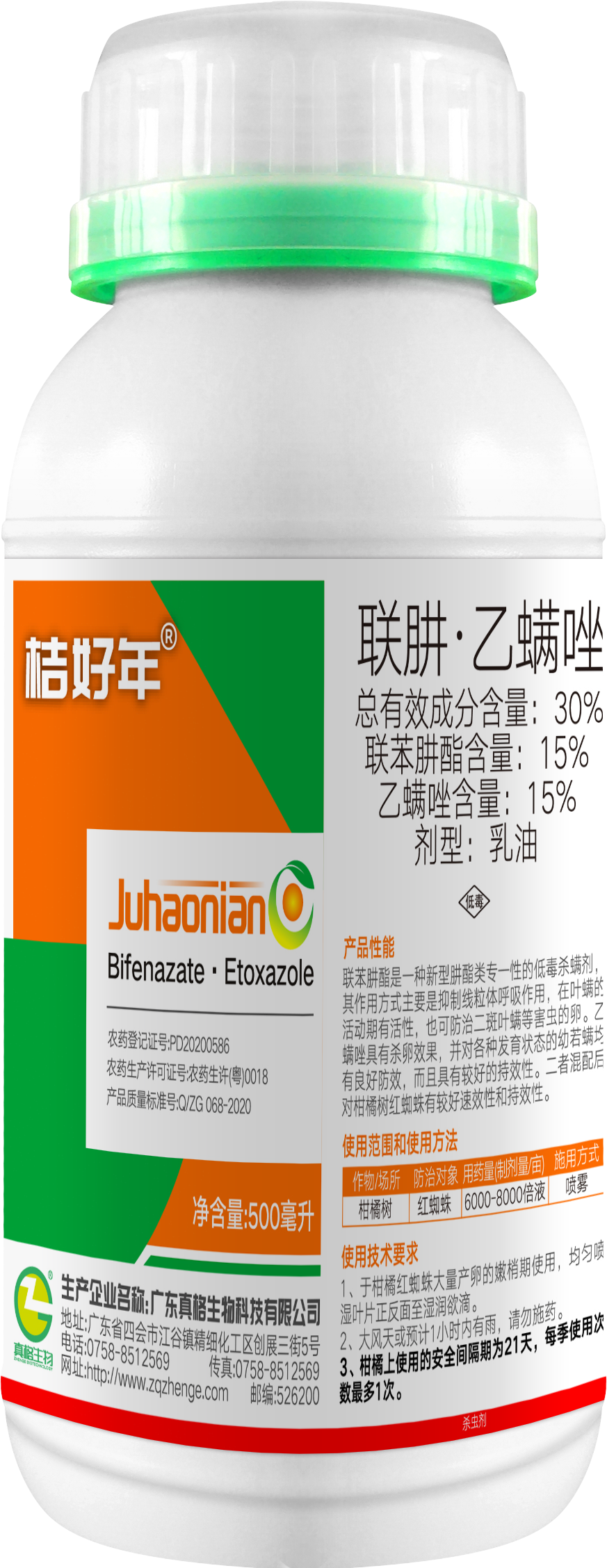 廣東真格在產(chǎn)品增效助劑上生耕細(xì)作,一直特別注重柑橘殺蟲劑殺螨劑殺菌劑與增效助劑協(xié)同的增效效果。產(chǎn)品桔好年(30%聯(lián)苯肼酯乙螨唑乳油)就是典型,登記柑橘紅蜘蛛,桔好年是市場上唯一的聯(lián)苯肼酯乙螨唑乳油,桔好年利用真格專用增效助劑與30%聯(lián)苯肼酯乙螨唑協(xié)同增效作用,使產(chǎn)品桔好年發(fā)揮最好防效,果農(nóng)使用桔好年防治柑橘紅蜘蛛,不會造成過量使用農(nóng)藥,不浪費(fèi)農(nóng)藥,減少害蟲抗藥性,也減少環(huán)境污染。